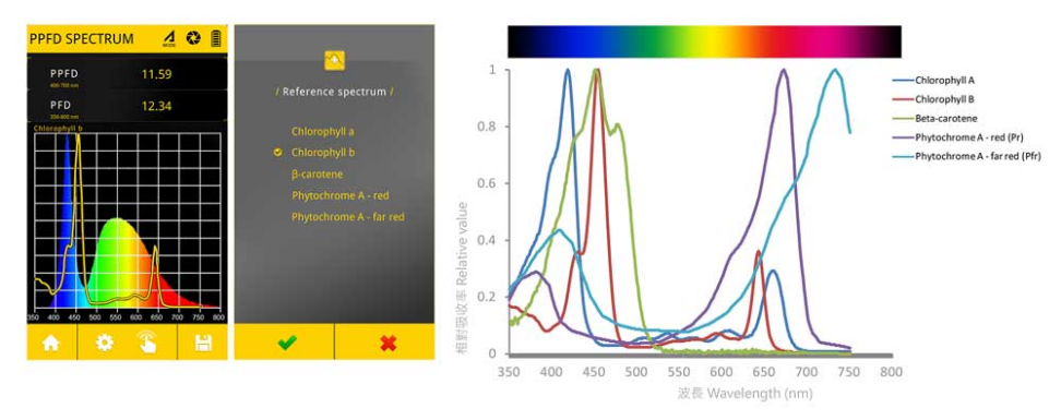 数值和光谱图显示工具,帮助您了解植物与光源之间的关系