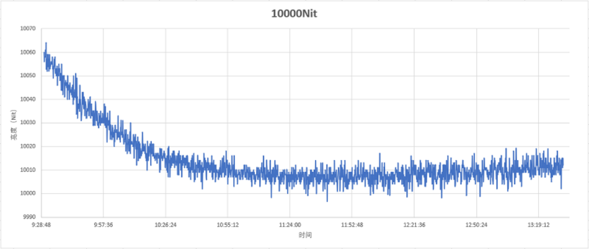 设置亮度10000Nit输出4小时内光源稳定性:99.32%